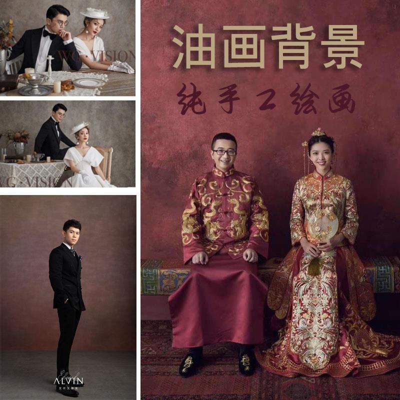 。古一艺术绘画直播手绘婚纱背景摄影全家福背景布订制热门设计联盟服务商