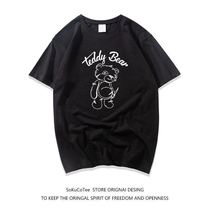 欧美街头潮牌ins超火的卡通小熊印花短袖T恤女宽松学生BF风半袖夏热门设计联盟服务商