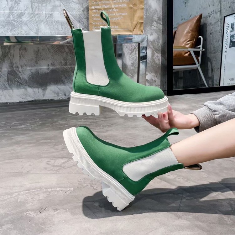 女鞋^靴^^^甘肃 兰州^欧洲站纯皮黄色靴女温州小众设计大黄靴子帅气英伦风单靴秋季